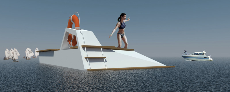 Als Prototypen aber schlugen die Architekten um Daniel Schwabe einen Badeponton vor, der aus eben demselben oben genannten WKNFK Sandwich besteht. Der Ponton ist natürlich architektonisch weniger komplex als das vorgestellte Hausboot kann aber teilweise mit dem Preisgeld finanziert werden, welches die Gruppe mit einem ersten Platz in der Kategorie Berufstätige mit nach Hause nahm.