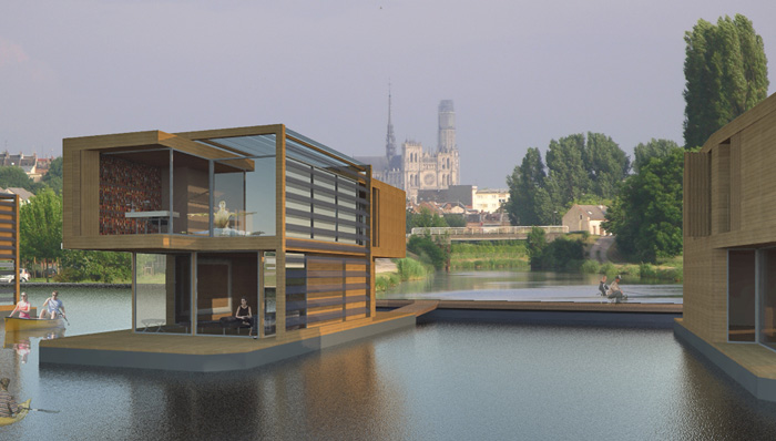 Durch eine weitere Behandlung soll die Sandwichplatte wasserfest versiegelt werden. Das Hausboot selbst erfüllt den Passivhausstandart, die Konstruktion verhindert Wärmeverluste durch reduzierte Öffnungen zum Norden hin und öffnet sich gen Süden mit einer großen Fensterfront. Ein verschiebbares Solarelement kann im Sommer die Glasflächen verschatten und tankt dabei viel solare Energie für das schwimmende Kleinod. Der Entwurf ist ursprünglich auf die geplante chinesische Beidahe Eco City zugeschnitten und bettet sich konzeptuell in die Wasserstadt als ökologische Alternative zum Wohnen am Hafen ein. Die Gruppe hat viel Liebe in ihre Materialtests gesteckt, um die schädlichen konventionellen Baustoffe durch ökologische Materialien ersetzen zu können und sich den Preis des Wettbewerbes redlich verdient.