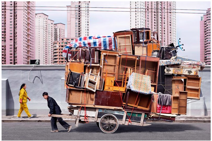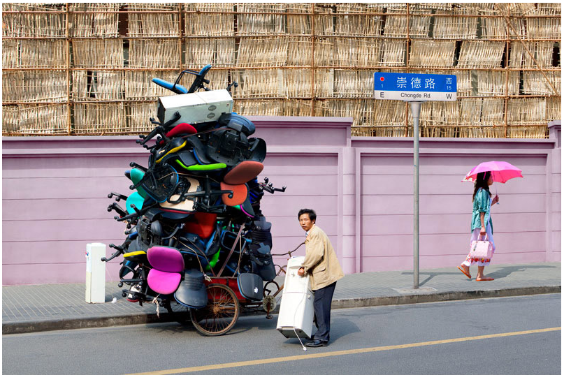 Der ein oder andere wird diese Fotoserie von Alain Delorme schon kennen. Egal. Großartige Bilder aus China, die Menschen auf Ihren Lastenfahrrädern oder sonstigen unmotorisierten Transportkarren zeigen. Wenn man bedenkt, wie viele extra mit dem Auto fahren, um die kleinsten Dinge zu transportieren, werfen diese Bilder doch einige Fragen auf. Es wird von niemandem erwartet, dass er seinen gesamten Umzug mit einem Fahrrad bewältigt, was bei einem WG-Zimmer aber garnicht so abwegig erscheint. Gerade in Großstädten mit öffentlichen Verkehrsmitteln, der Möglichkeit des Car-Sharing (privat initiiert oder eines Unternehmens) und die meisten Ziele in Lauf- oder Fahrradweite, sollte sich jeder mit einem eigenen Auto über den wirklichen Nutzen Gedanken machen.