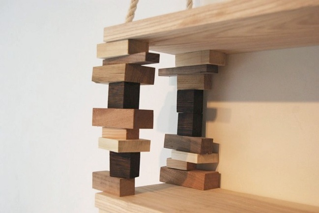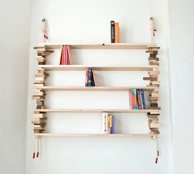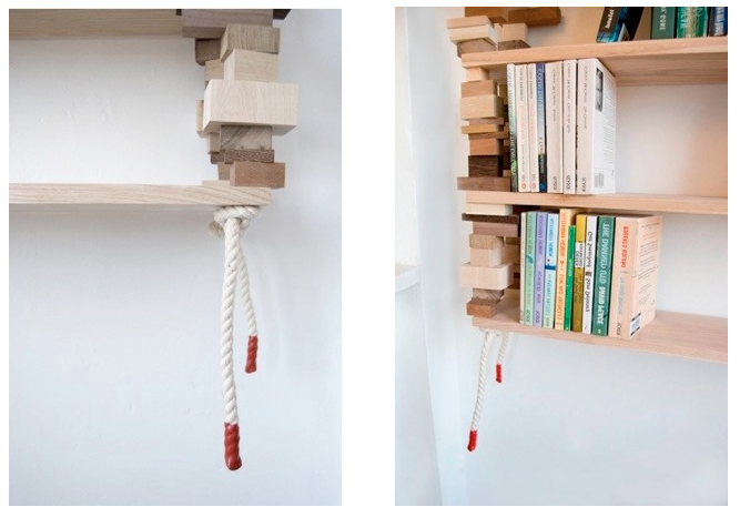 Amy Hunting ist dem ein oder anderen vielleicht noch von der Möbel-Kollektion THE PATCHWORK COLLECTION ein Begriff. Bei Ihrem Entwurf BLOCKSHELF greift Sie auf das selbe Ausgangsmaterial, Holzreste, zurück. Herausgekommen ist ein sehr schönes Regal, dass fast zu schade ist, um es mit Büchern vollzustellen.Verbunden werden die einzelnen Klötze durch ein kräftiges Seil, das sie zusammenhält. Je nach Anzahl der Bücher müssen noch vernünftige Dübel in die Wand. Das ganze kann käuflich bei greenfurniture in Schweden erworben werden.