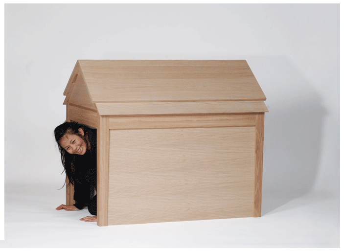 Die Norwegische Designerin Ingrid Brandth entwarf einen schlichten Tisch mit einem kleinen Geheimnis. Im Handumdrehen läßt sich aus ihm eine Hütte bauen. Nicht wirklich brauchbar um sich vor nuklearen Katastrophen zu schützen, sondern vielmehr um einen Raum zu schaffen, in dem man sich rundum sicher und geborgen fühlen kann.
