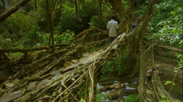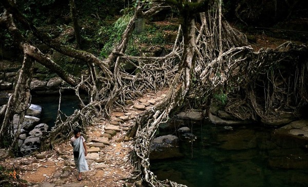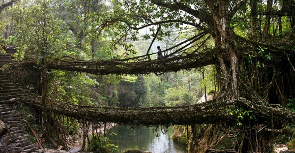 Von einem wachsenden Haus wurde bereits hier berichtet. Doch diese Brücken in Meghalaya (Indien) stellen das Baumhaus locker in den Schatten. In den vergangenen 500 Jahren sind diese beeindruckenden Brücken, die über 100 Meter lang und bis zu 50 Personen tragen können, gewachsen. Sogar „Doppeldecker“ sind unter den Bewohnern von Nongriat in Meghalay entstanden.