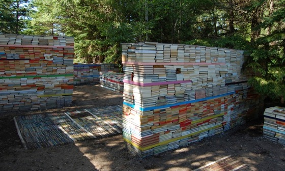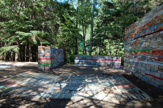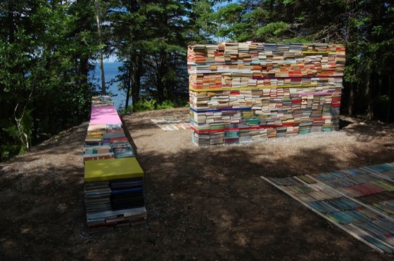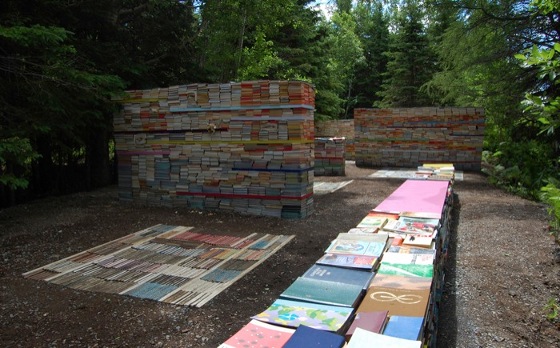 Thilo Folkerts und Rodney Latourelle entwickelten eine andere Idee. Ihr Plan: Die Jardin de la Connaissance für das Internationale „Festival des Jardins de Metis“ in Quebec, Kanada. Aus rund 40.000 alten Büchern (entspricht ca. 35 Tonnen) werden Wände, Bänke und Bodenbeläge, die zusammen Räume – nein eine ganze Bibliothek, mitten im Wald schaffen. Ganz bewusst setzen die beiden Künstler die Bücher dem langsamen Zerfall aus, provozieren ihn sogar durch das Ansiedeln von verschiedenen Pilzsorten auf und zwischen den Büchern. Eine Auseinandersetzung zwischen humaner Erkenntnis und natürlichen Prozessen.