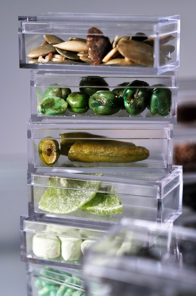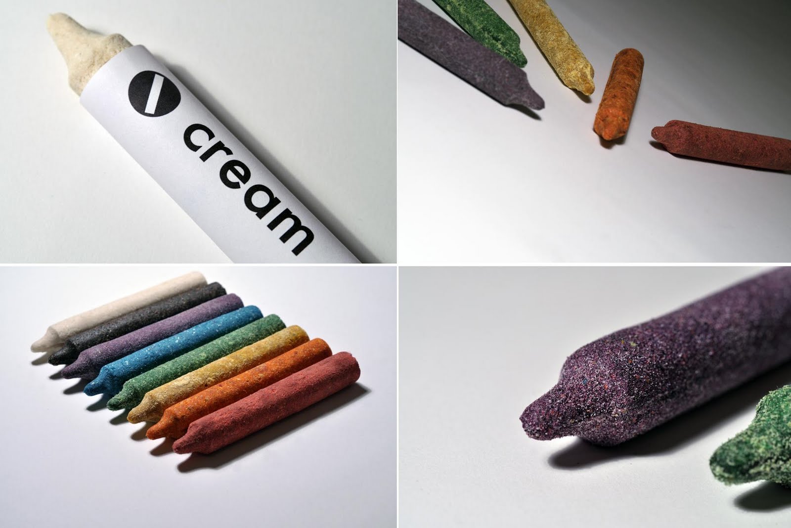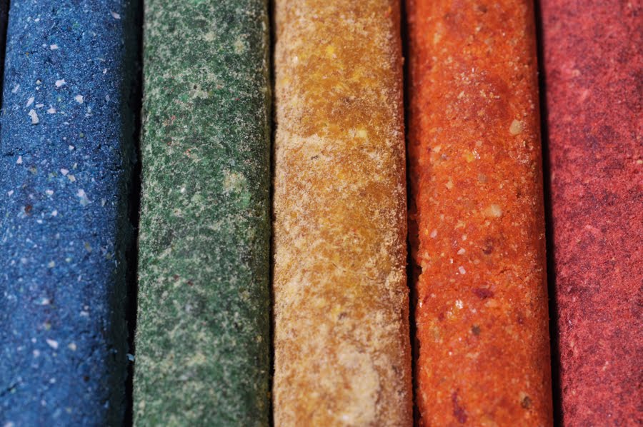 Nicht nur für Kinder, die alles in den Mund stopfen was nicht niet- und nagelfest ist, sollten diese Buntstifte interessant sein. Hergestellt werden die Buntstifte aus Nüssen, Kernen, getrocknetem Gemüse und Früchten und sonstigen farbgebenden Lebensmitteln. So besteht der braune Stift primär aus Mandeln sowie schwarzem und wildem Sesam. Im Grün verbirgt sich getrocknete Kiwi und Kirbiskerne. Blau beinhaltet Blaubeeren und ist somit die süßeste Variante. Um die farbigen Maleigenschaften zu verstärken, wird entsprechende Lebensmittelfarbe hinzugefügt. Stellt sich nur die Frage was mehr Spass macht, Malen oder Essen? Entworfen wurden die leckeren Stifte von luxirare.