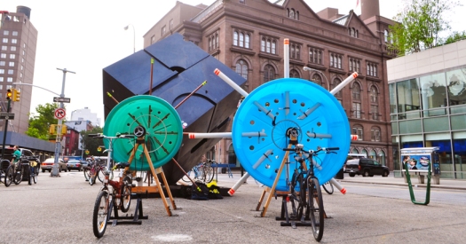 Mit dem cyclophone Marcelo Ertorteguy und Sara Valente eine Fahrrad-Installation ins Leben gerufen, die je nach Geschwindigkeit verschiedene Rhythmen erzeugt. Das Projekt wurde im Rahmen des Summer Streets 2012 Festivals präsentiert und vor dem Verkehrsministerium aufgestellt. Die fahrradgetriebene Musik-Station nutzt die Pedalkraft normaler Fahrräder, um über in einer Wanne fest installierte Rohre unterschiedliche Geräusche und Rhythmen zu erzeugen. Ein sehr schönes Projekt, das Bewegung mit akustischem Erlebnis verbindet.