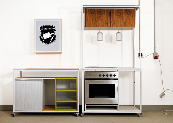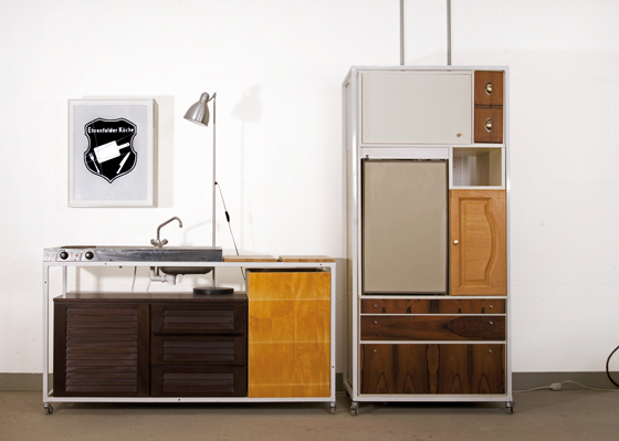 In der zentralen Ausstellungshalle vom Design Quartier Ehrenfeld präsentieren Oliver Schübbe und Sven Stornebel die eigens für die Passagen 2011 gestaltete Ehrenfelder Küche aus Restwertstoffen. Reparieren und umfunktionieren ist ein zentrales Thema der Designstudie. Die Vielfalt des verfügbaren Materials ist eine große Herausforderung an die Umsetzung in die pure Funktionalität und Ästhetik einer Küche. Dabei wurde die Tauglichkeit der Küche auf den Passagen 2011 in einer Kochsession erfolgreich erprobt.