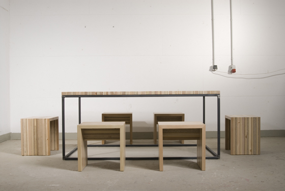 Die Möbelserie Other Side von Sven Stornebel besteht aus individuellen Holzplatten, die sich aus der Addition recycelter Materialstreifen zusammensetzen. Jedesmal neu und einzigartig. Unterschiedliche Möbel sind aus diesem einzigartigen Plattenmaterial aus Restwertstoffen entstanden und wurden im Rahmen der PASSAGEN 2011 erstmals ausgestellt. Konzeptkunst oder Design? Auf jeden Fall einhundert Prozent Recycling und ein Möbel als Statement gegen das Gleichmaß unserer Zeit.