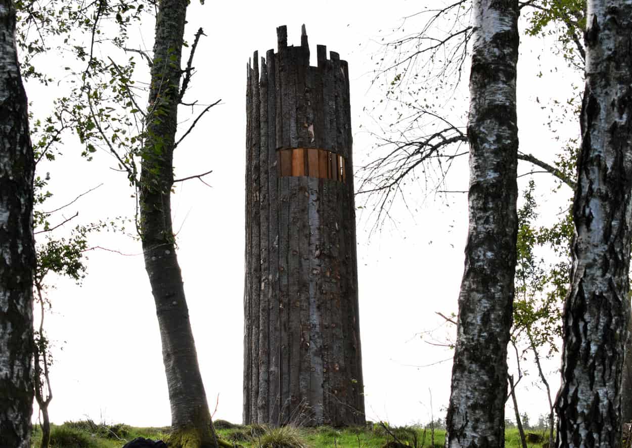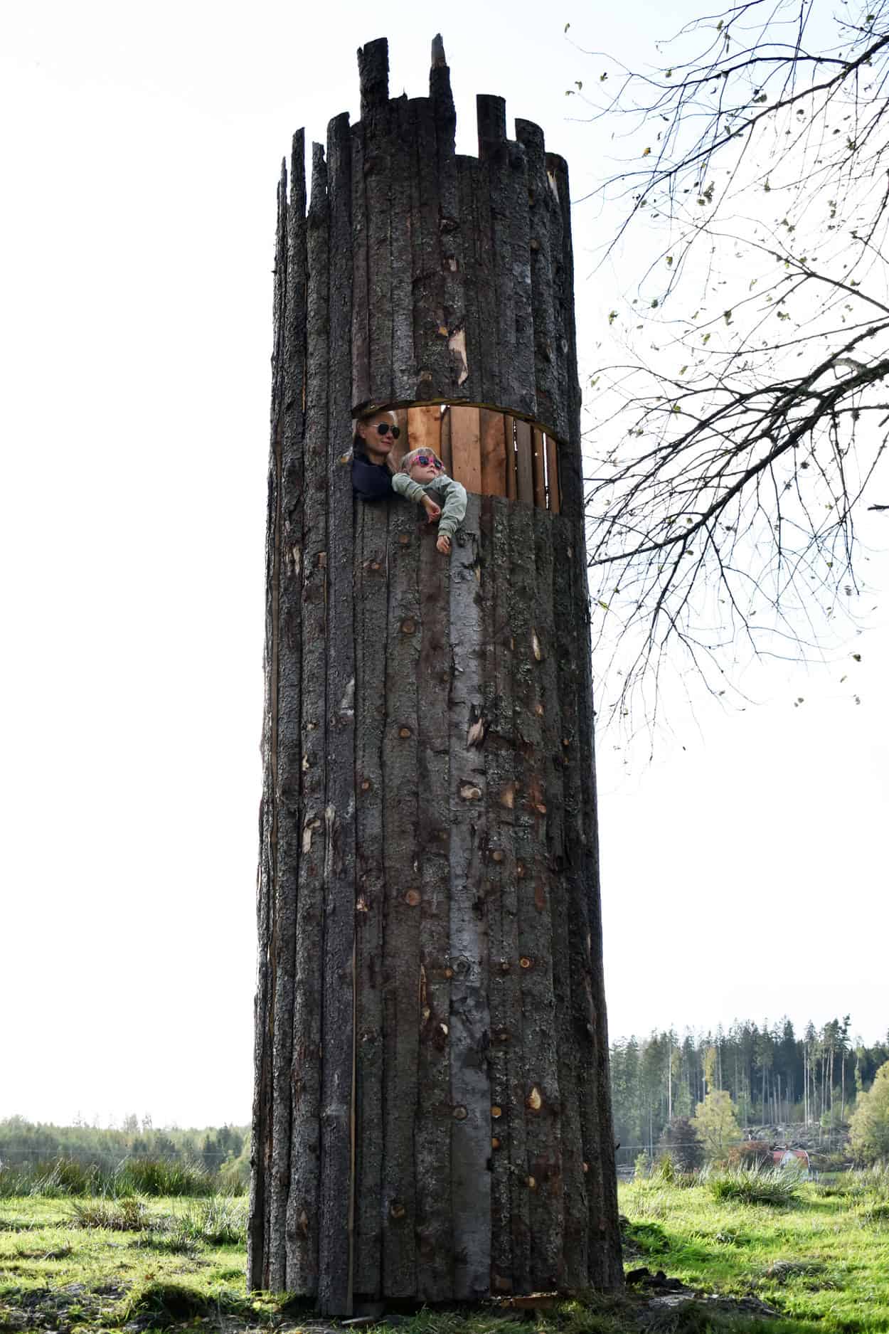 Wer den Turm sieht, spürt sofort seine stille Kraft. Überraschend, wie selbstverständlich er in der Landschaft steht, als wäre er schon immer da gewesen. Der kleine Turm wirkt auf den ersten Blick wie ein mächtiger Baumstamm, der sich organisch in die Umgebung fügt. Eine einfache Idee, und doch so stimmig. Die durchgesägten Stämme erzählen vom Kreislauf: vom Fallen, vom Neubeginn, vom Weiterleben in anderer Form. Genau darin liegt die Schönheit dieses Projekts, es ist schlicht, aber sinnlich, fast meditativ.
