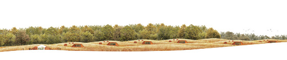 Harmonisch und unaufdringlich fügen sich die Höhlenbauten in die hügelige Graslandschaft Pennsylvanias ein. Auf rund 650 Quadratmeter sollen energieeffiziente modern eingerichtete Unterkünfte entstehen, die ähnlich wie ihr großer Nachbar auch, den direkten Dialog mit der Landschaft suchen. Die erdbedeckte Konstruktion schafft ein kühles Innenraumklima und reduziert so den Einsatz von Klimaanlagen während der heißen Sommermonate.