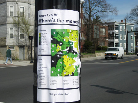 Die gezielte Vermittlung von Daten und Informationen wird in Zeiten der Informationsflut immer wichtiger, ob auf der Straße, im Internet oder gedruckt. Über Formen und herausragende Beispiele haben wir bereits hier, hier und hier hingewiesen. Mit Hilfe von Streetart werden Menschen erreicht, die vermutlich nie entsprechende Studien, Artikel oder Berichte gelesen hätten. Es kann zum Beispiel auch die Interaktion der Bewohner eines Viertels fördern, wie es die Visualisierung des Stromverbrauchs zeigte oder die Aushänge des Künstlers Devin (auch als Download), der die Bewohner auffordert sich mehr mit ihrem Wohngebiet auseinanderzusetzen. Jeder ist aufgefordert mitzumachen und gegen die Bildungsarmut anzukämpfen. Graffiti und Bildung, wer hätte das gedacht :)