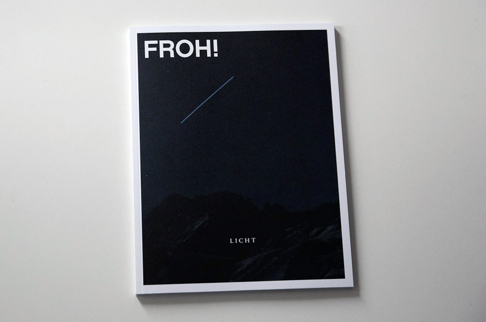 „Draußen wird es immer dunkler – wir haben mal LICHT gemacht. Die fünfte Ausgabe von FROH! erzählt von Signalraketen und Irrlichtern, von Lebenslichtern, Energiesparlampen und davon, was wir machen, wenn das Licht aus ist. Herausgekommen ist ein Heft, das man unter der Bettdecke lesen kann. Ohne Taschenlampe.“