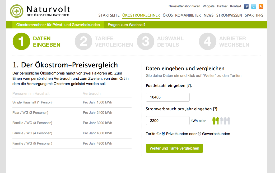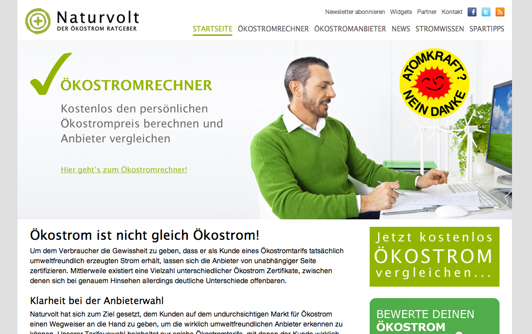 Doch vergleicht man die Zahlen mit der Gesamtzahl der Haushalte, ist das noch viel zu wenig. Damit der Wechsel noch einfacher und für jeden ansprechend funktioniert, hat Sascha Griep Anfang diesen Jahres die Internt- Plattform Naturvolt.de ins Leben gerufen. Die Seite soll eine Dienstleistung und kein politisches Instrument sein. Auch „Nicht-Aktivisten“ sollen angesprochen und bedient werden.