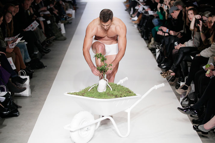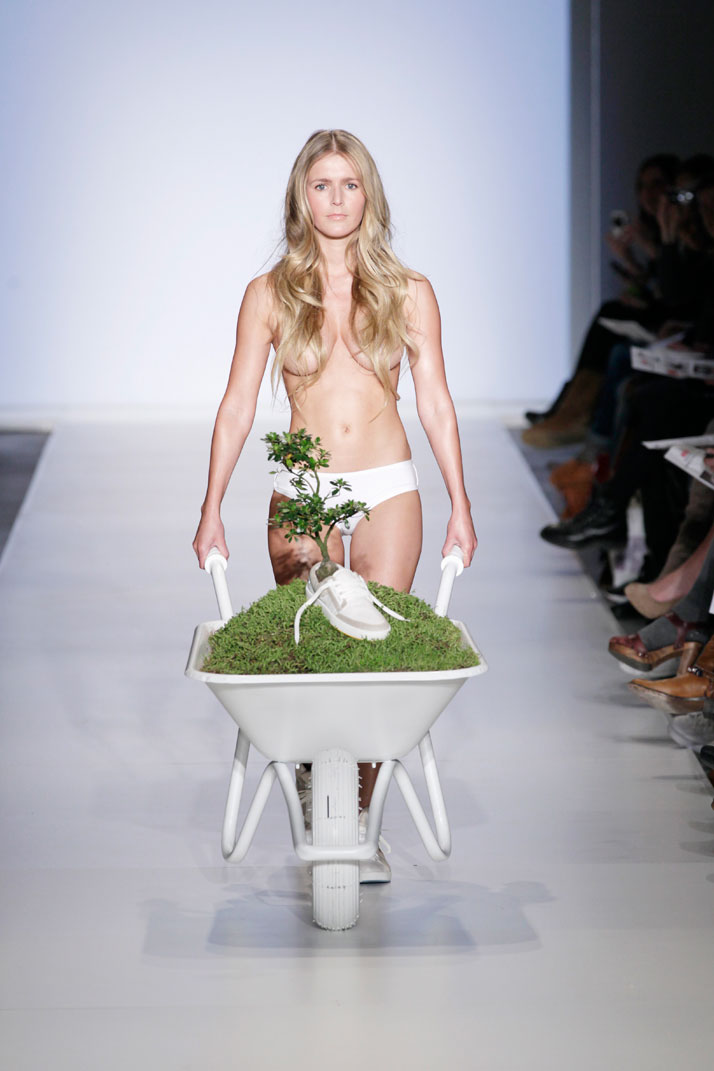 Auf der diesjährigen Amsterdam International Fashion Week präsentierte OAT shoes seine Virgin collection, die für eine kleine Revolution sorgten. Die sneakers sind, wenn sie denn einmal aufgetragen sind komplett kompostierbar und können entweder im Garten vergraben, auf den Komposthaufen oder in die Bio-Tonne werfen. Anschließend wächst vielleicht ein buntes Sneaker-Bäumchen. Präsentiert wurden die Schuhe unt erdem Titel Saved from the garden of Eden von – wem auch sonst – Adam und Eva mit jeweiles einer weißen und mit Gras gefüllten Schubkarre. Auch die Jury war begeistert und lies OAT den zweiten Platz der Green Fashion competition gewinnen. OAT ist ein junges öko Schuh-Label das vor zwei Jahren mit dem Ziel, Produkte zu entwerfen, die Menschen mit ihrer Umwelt besser verbindet.