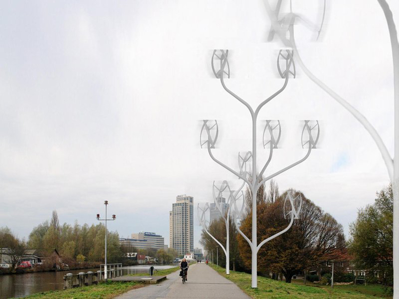 Die NL architects, mit Sitz in Amsterdam haben ein Konzept zur Windenergie-Gewinnung in der Stadt bzw. dicht besiedelten Gebieten entworfen. Um möglichst viel Wind einzufangen verfügen die power flowers über zahlreiche Verästelungen mit Propellern. Durch die vertikalen Rotoren benötigen weniger Platz und können Wind aus allen Richtungen direkt umsetzten. Eingesetzt werden können die „Wind-Bäume“ ähnlich Straßenlaternen im öffentlichen Raum aber auch auf Hausdächern, Vorgärten etc. Auch wenn es einige Bilder vielleicht etwas zu gut meinen was die Anzahl angeht :) Hier und Hier gibt es noch zwei spannende Videos der Modelle.