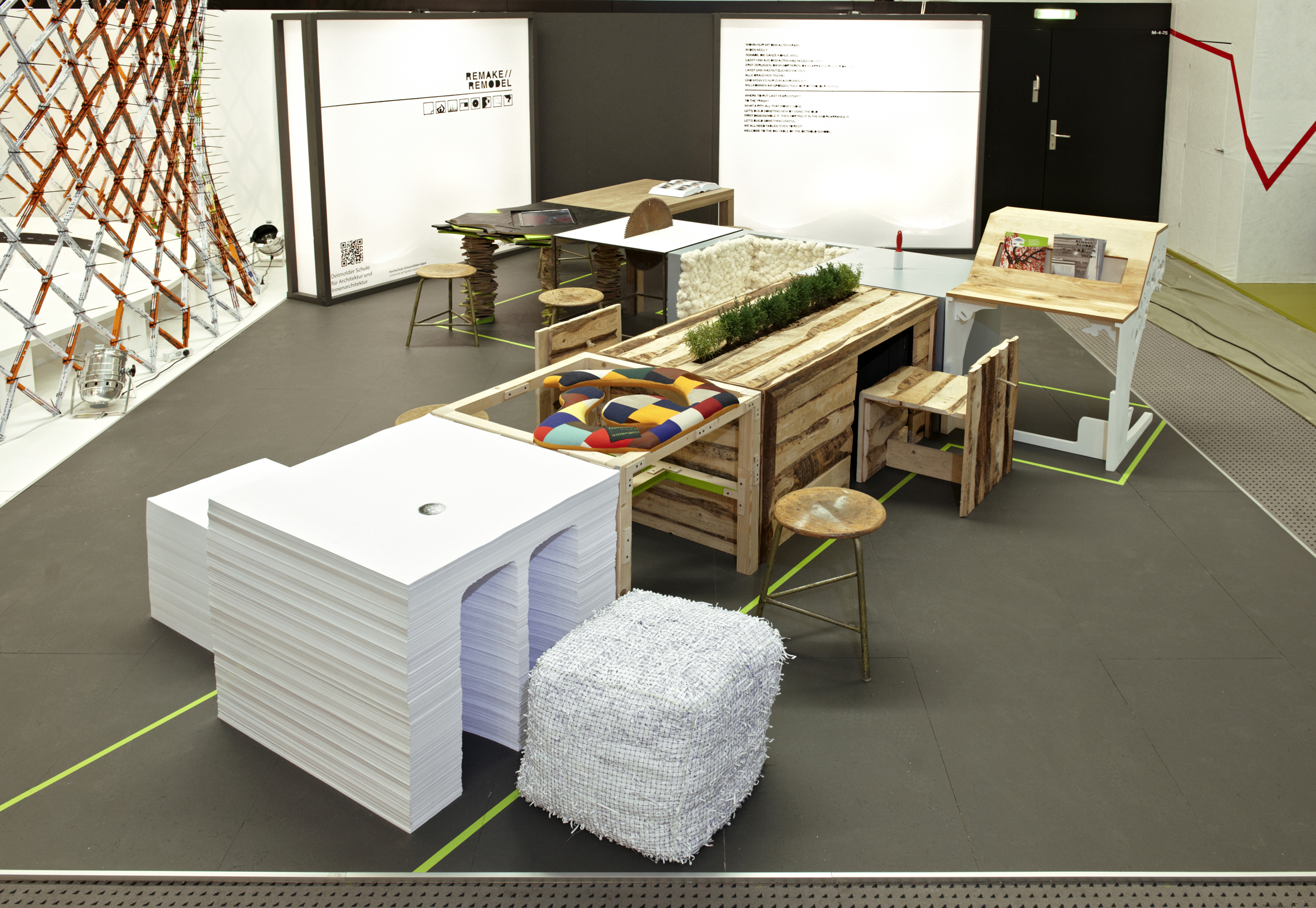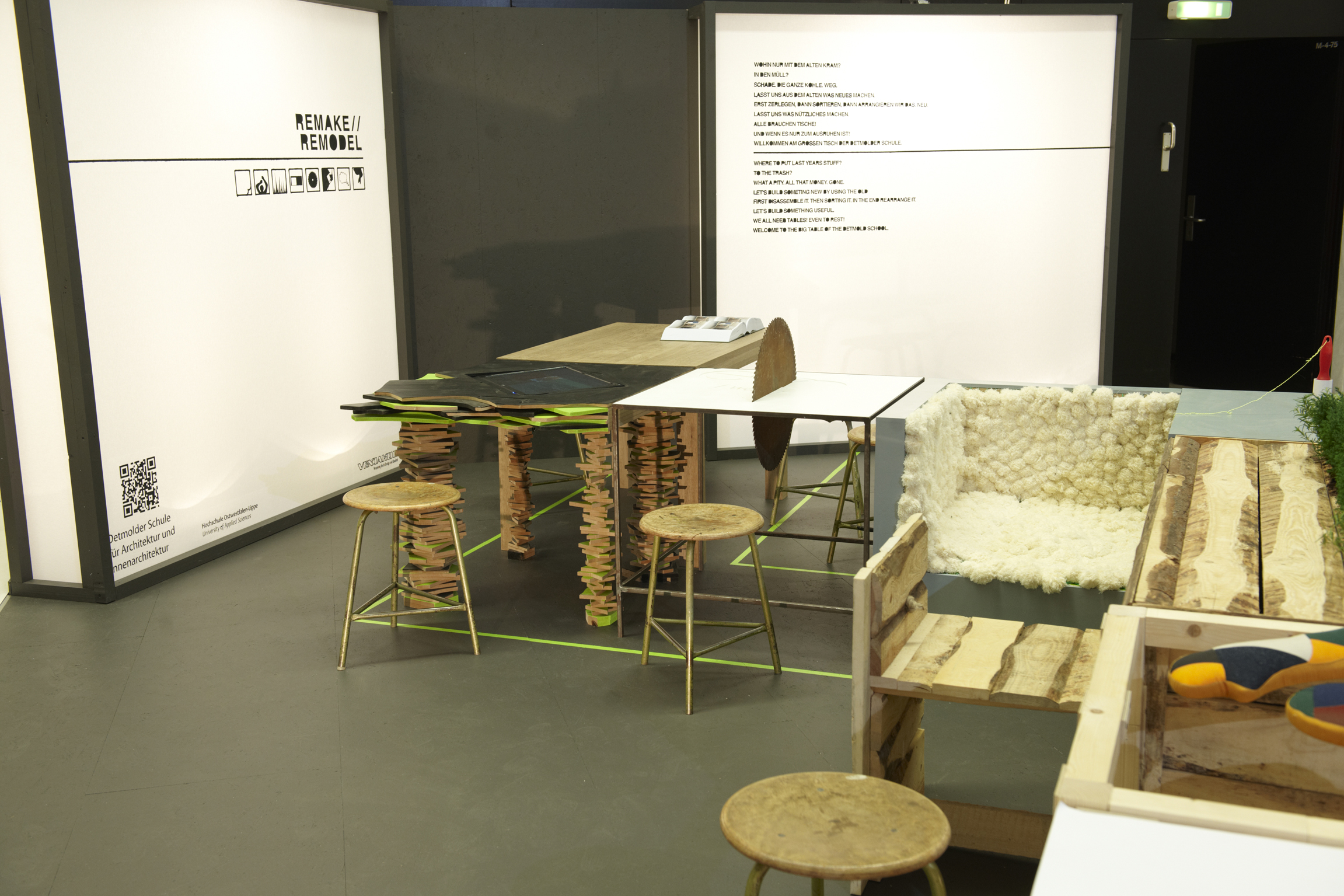 Die Detmolder Schule für Architektur und Innenarchitektur hat sich auf der IMM-Cologne mit dem Projekt REMAKE // REMODEL präsentiert. Getreu dem Motto, dass Müll ein Designfehler ist, stand für den Messestand 2011 der Detmolder Schule das sehr aktuelle Thema Recycling-Design im Vordergrund. 23 Studierende befassten sich in einem Wahlpflichtfach von Prof. Frank Nickerl mit dem Entwurf und der Umsetzung des sieben mal fünf Meter großen Messestands.