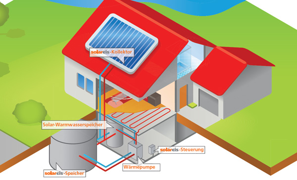 Das SolarEis-System ist ein neues Konzept zur energieeffizienten Versorgung von privatem Wohnraum und Gewerbeflächen mit Energie. Dabei wird die hohe Wärmespeicherkapazität von Wasser auf niedrigem Temperaturniveau sowie die große Menge freiwerdender Kristallisationsenergie beim Übergang von Wasser zu Eis genutzt, um in den verschiedenen Jahreszeiten die Energieversorgung zu optimieren. Das System sieht die Speicherung von Sonnenenergie in großvolumigen Wassertanks in den warmen Monaten vor, die ins Erdreich versenkt werden. Auf Grund im Erdreich gespeicherten Wärme ist dabei keine zusätzliche Isolierung erforderlich.