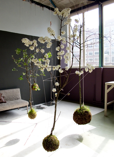 Mich haben diese fliegenden Blumen, Pflanzen und Bäume sofort an den Film Laputa: Castle in the Sky von Hayao Miyazaki erinnert und ins schwärmen gebracht. Natürlich ist es nicht gerade die ideale Umgebung für Pflanzen, schafft aber eine märchenhaft surreale Atmosphäre. In minimalistischen Räumen kommen die STRING GARDENS besonders zur Geltung und schaffen eine Symbiose aus Natur, Architektur und Phantasie.