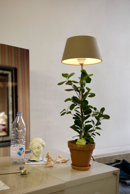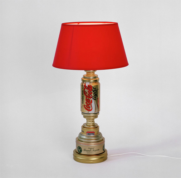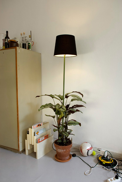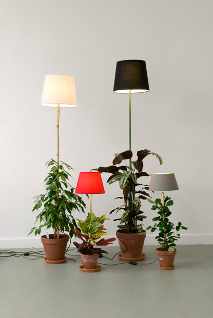 Helmut Smits ist ein Niederländischer Künstler und Designer der in seinen Arbeiten u.a. (recycling) Materialien und Produkte in neuen Kontext stellt. So auch bei den Plant Lamps. Viele Pflanzen benötigen eine Stütze um nicht umzuknicken. Warum diese Stützen nicht mit Lampenschirm, Fassung und Kabel kombinieren? Ebenfalls großartig sind Coca-Cola Light, Candlestick Copper oder auch passend zum Recycling-Tisch aus Kartuschenpressen, die Glue Clamp Lamp.