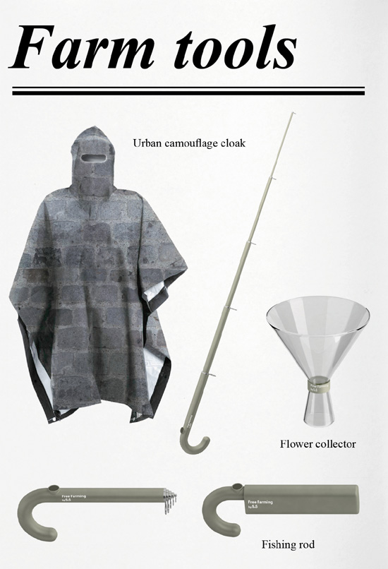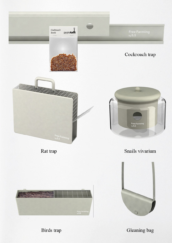Bis es soweit ist, kann sich der Urbane Landwirt /Selbstversorger mit diesem verrückten Konzept der 5.5 Designer vergnügen, die bereits 2003 durch ihr Projekt REANIM zerbrochene Gegenstände wiederbelebten. Der Leitfaden für freie Landwirtschaft ist ein Forschungsprojekt, das radikale Lösungen für Nahrungsmittel, Energie und Ressourcen-Produktion sucht.