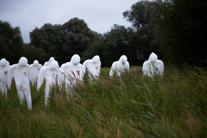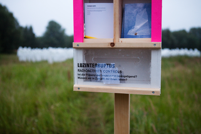 Ist die Präsenz der Inspektoren beängstigend? Müssen wir in Zukunft mit Ihnen leben? Diese Frage stellt unter anderem der Künster Luzinterruptus mit seiner Installation Radioactive Control im Rahmen des Dockville Festival in Hamburg.