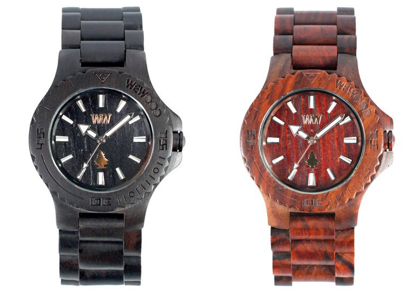 Vor geraumer Zeit haben wir hier eine Uhr aus recycelten Skateboard-Decks vorgestellt. Auch wenn es sich bei den WeWood Uhren nicht um recyceltes Holz handelt, sehen Sie verdammt gut aus. Mit Sitz in Los Angeles kann das ursprünglich in Italien gegründete Label auf Kunststoffe, Metall oder Leder verzichten (vom technischen Innenleben einmal abgesehen). Es kommen unterschiedlichste Holz-Arten wie z.b. Ebenholz und Ahorn. Zudem wird zusammen mit american forests für jede Uhr ein neuer Baum gepflanzt.