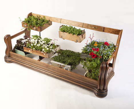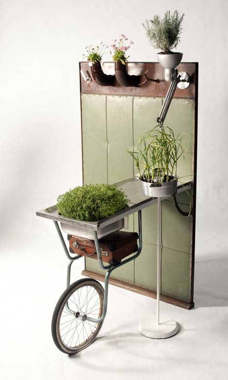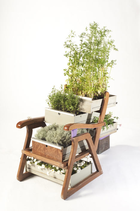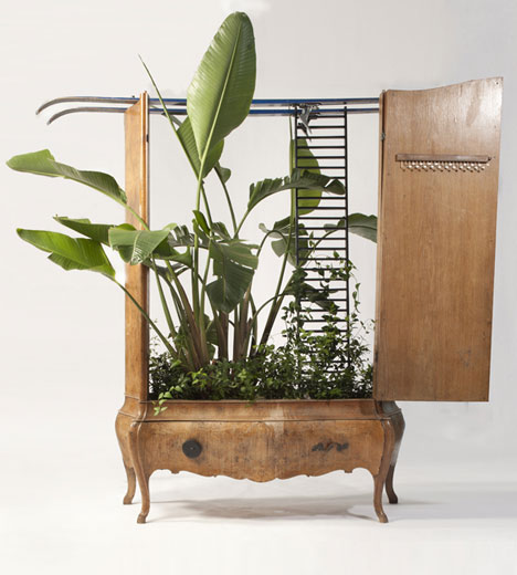 Die Designers Peter Bottazzi und Denish Bonapace haben unter dem Titel Da Morto A Orto (von überflüssig zu reichlich) alte Möbel zum Teil neu kombiniert und zu Orten weiterentwickelt, die nun von Pflanzen bewohnt werden. Die Möbel sind aufgearbeitet, geflickt, neu zusammengesetzt und mit unterschiedlichsten Pflanze zu verzauberten „Indoor-Hausgärten“ verwandelt.
